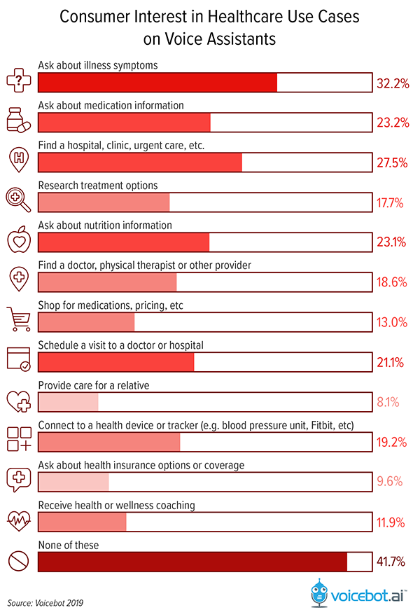 Chatbot i boty głosowe mogą pomóc w przeprojektowaniu modeli biznesowych i poprawie wyników leczenia pacjentów. Szpitale, oddziały ratunkowe i gabinety lekarskie mogą wykorzystywać chatboty ze sztuczną inteligencją (AI), aby zapewnić pacjentom spersonalizowaną opiekę, całodobowy dostęp do informacji o ich stanie zdrowia oraz przypomnienia o wizytach i lekach. Voiceboty mogą również ułatwić pacjentom umawianie wizyt i znajdowanie lekarzy. Dzięki wykorzystaniu sztucznej inteligencji chatboty i boty głosowe mogą pomóc zwiększyć zaangażowanie pacjentów, obniżyć koszty i poprawić wyniki.